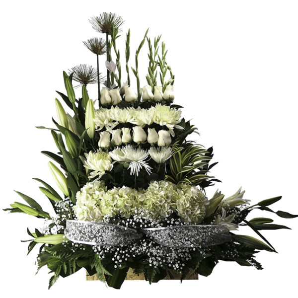 Arreglo floral elaborado en variedad de flor blanca.