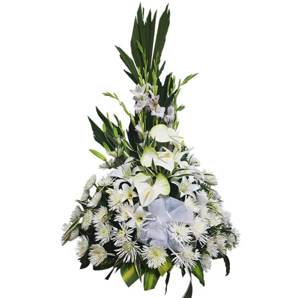 Anturios, clemón, azucenas, gladiolos, hojas de lino, hojas de iraca, helecho cuero