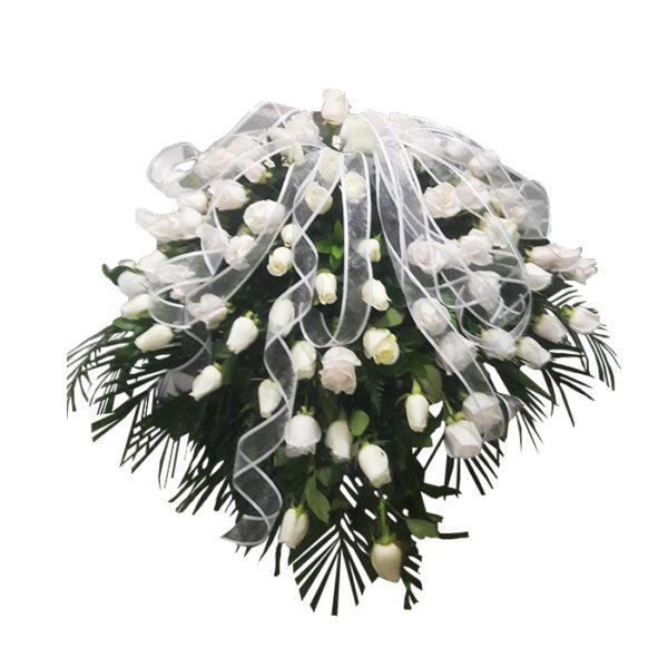 El ramo de flores Manto Sagrado: un manto de pureza y elegancia con rosas blancas que cubren la caja, regala belleza y amor en cada pétalo.